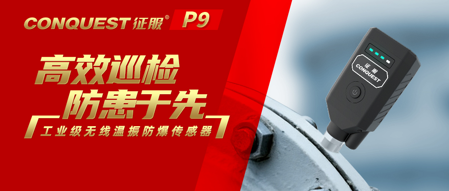 CONQUEST征服P9无线温振传感器精准采集工业设备数据,为企业构建低成本预测性维护体系,从“事后